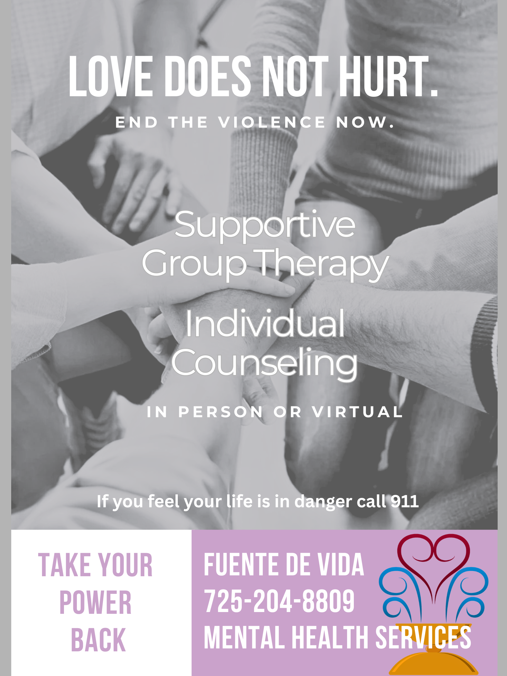 At Fuente de Vida, we believe that love should feel safe, supportive, and empowering. If you are experiencing emotional, physical, psychological, or verbal abuse, you are not alone — and you deserve help.